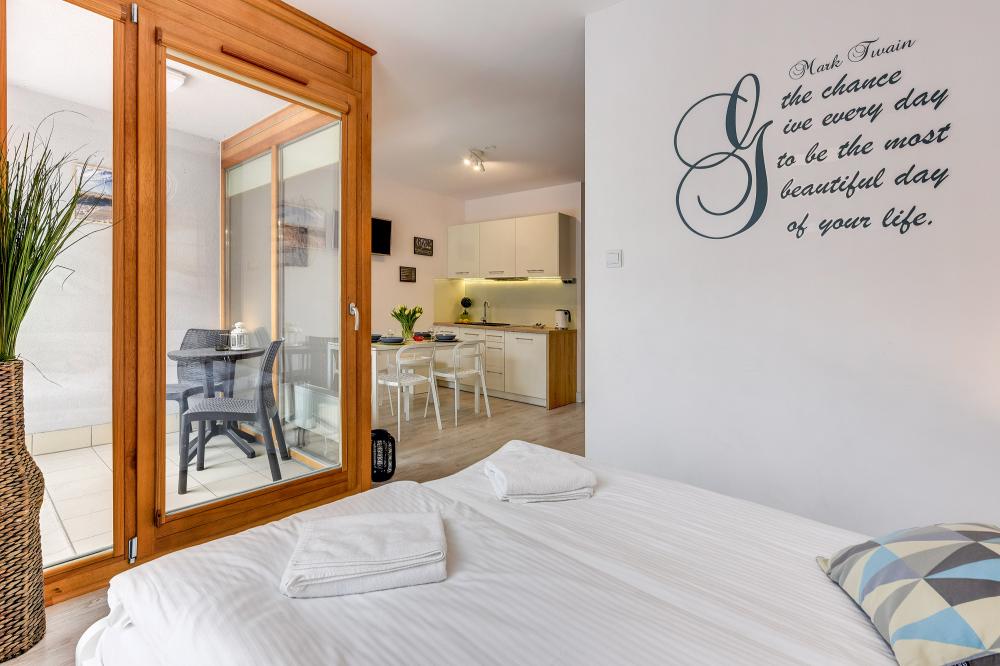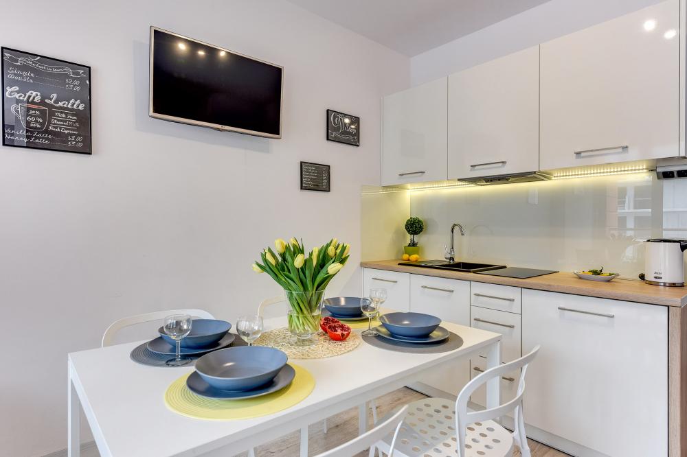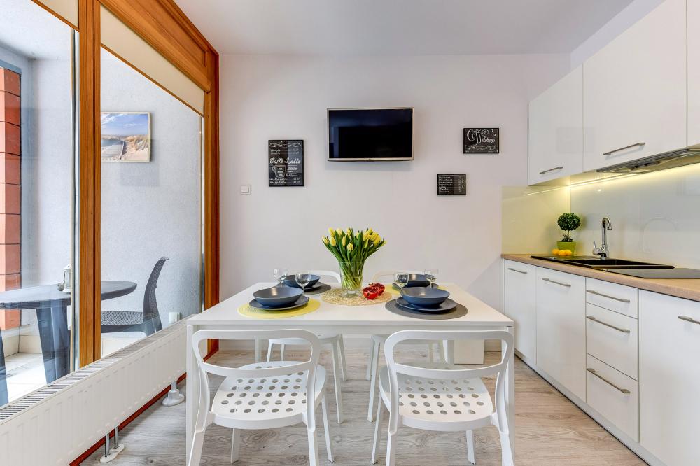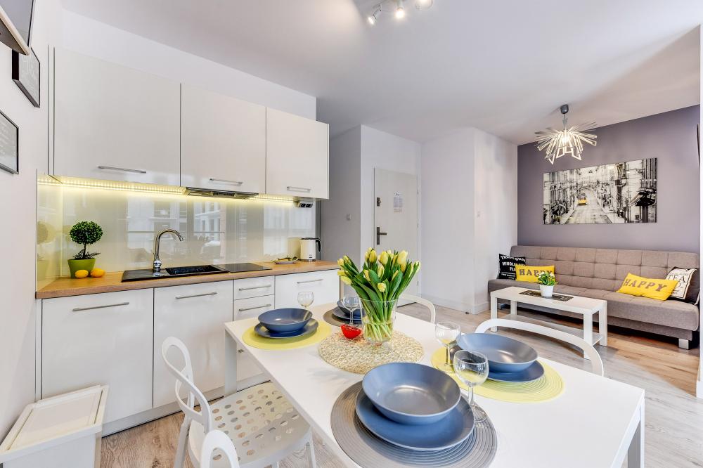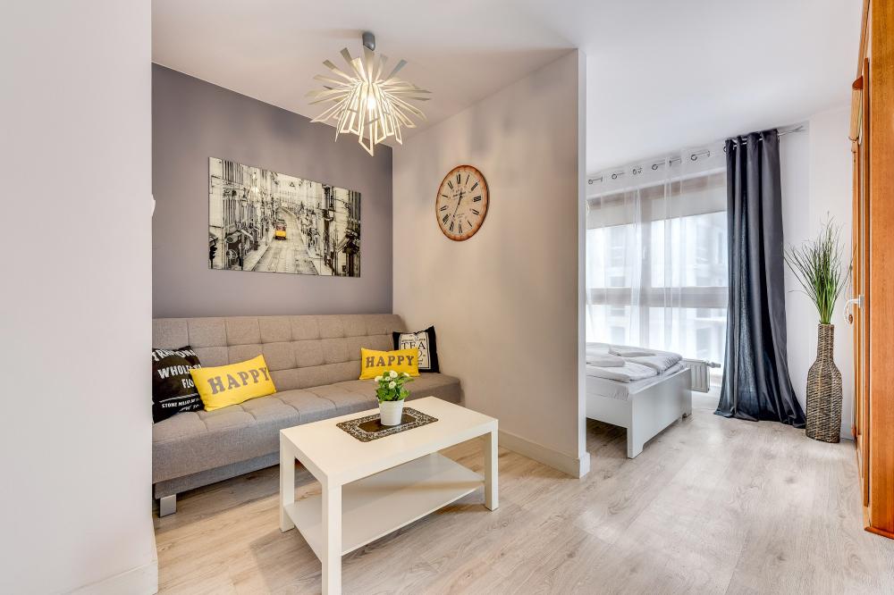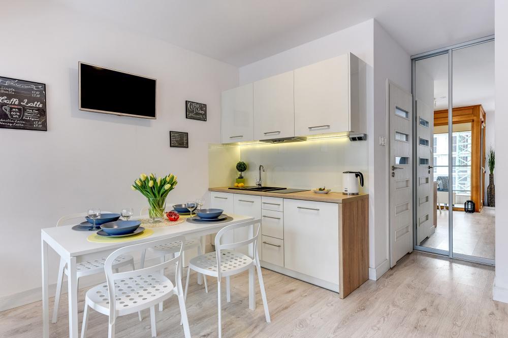 Przytulny apartament w Gdańsku o powierzchni 30 m², dla 4 osób. Składa się z jednego pomieszczenia z łóżkiem podwójnym i rozkładaną sofą. Do dyspozycji gości jest balkon, aneks kuchenny z lodówką, zmywarką, czajnikiem elektrycznym, ekspresem do kawy oraz zestawem do parzenia kawy i herbaty. W łazience znajduje się prysznic i suszarka do włosów. Apartament wyposażony jest w centralne ogrzewanie, bezprzewodowy internet, a także zapewnia hotelowe tekstylia i ręczniki, gwarantując komfortowy pobyt w wysokim standardzie