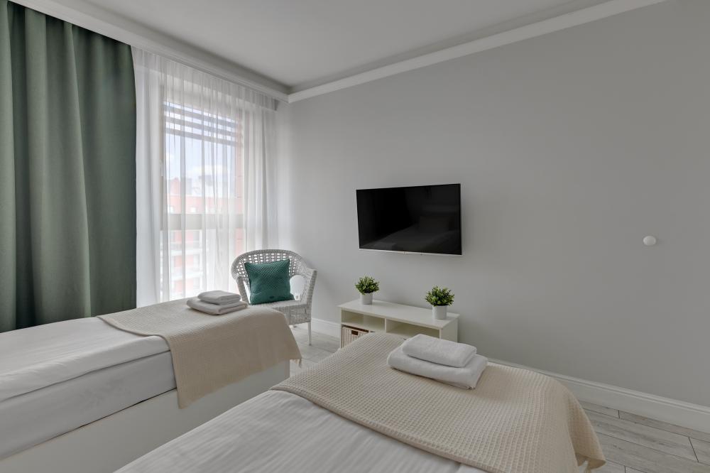 Klucze do apartamentu znajdują się w specjalnej skrzynce obok drzwi. Kod do skrzynki wyślemy Ci w dniu przyjazdu.